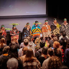 On April 27, 2022, at Abbotsford Arts Centre, the Mamele’awt Community Indigenous Education Centre honoured the 2022 Indigenous Role Models. Before entering, Role Models were covered with a blanket as a way of claiming the students, giving them a warm hug, and helping them on their journey forward, along with a headband to remind them to have good thoughts and a good mind. Chris Silver, Councillor of Semá:th First Nation began the Ceremony with a welcoming song and explained the importance of the Ceremony. Mr. Perry Smith, Director of Curriculum, was the traditional speaker and further explained the meaning of the day and how protocols are in place to ensure the Ceremony is done well, with a good heart and a good mind. Students were brought in by Tyrone Thomas, Jessi Old Coyote, and Tlatsemot leading in an honouring song as the students were brought forward into the space. Each student was honoured on stage by either their Indigenous Support Worker or Teacher for Indigenous Success, who expressed each student's hard work, dedication to culture, and future goals which brought them to be honoured as Role Models. The day was filled with gratitude and inspiration as we celebrate these students' accomplishments. The Honouring Ceremony was live-streamed and can be viewed on the Abbotsford School District YouTube page.